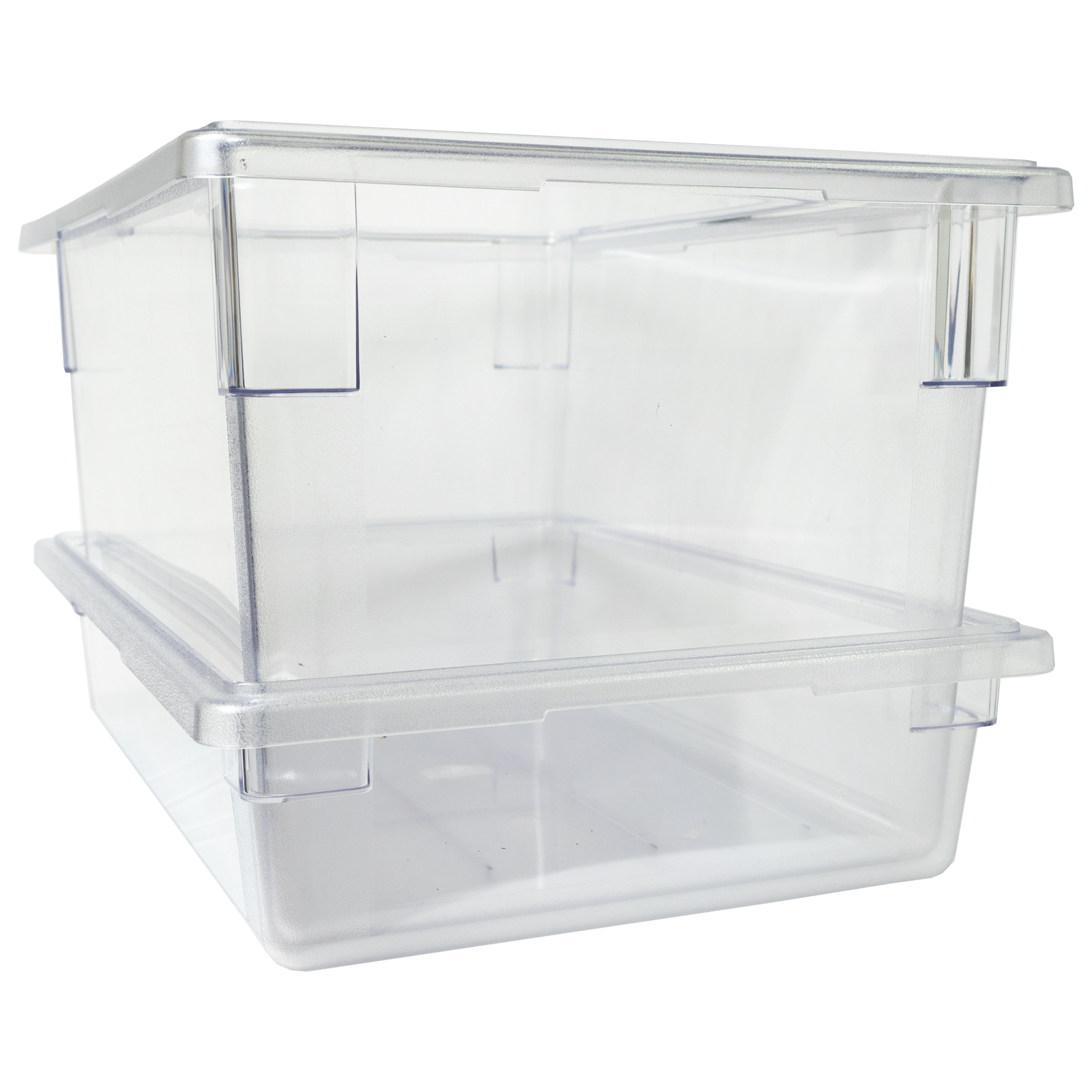 The FSB-9C Food Storage Box is a durable, clear polycarbonate container designed for efficient food storage. Measuring 25.88" W x 17.88" D x 9.25" H and weighing 6.33 lbs, this full-sized box offers ample space for organizing ingredients while ensuring visibility and easy access. Ideal for both commercial kitchens and home use.